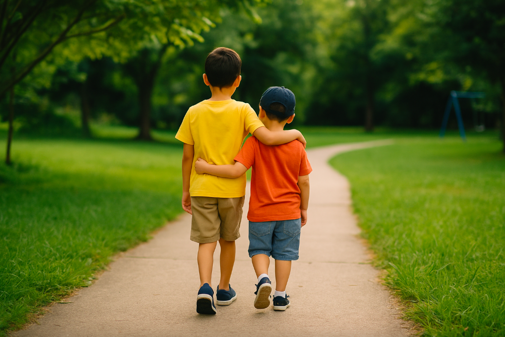 3️⃣ भाई के साथ कदम बढ़ते हैं,