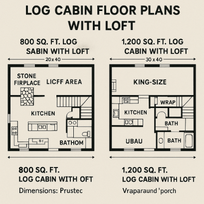 Here are two examples of log cabin floor plans with lofts that highlight the beauty and practicality of these designs: