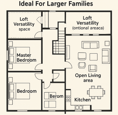 - Loft: Positioned above the living room, this open space can serve as a small office or playroom.