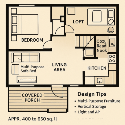 - Dimensions: The loft should ideally be around 8 to 10 feet in height to ensure it feels open and airy. The main floor typically ranges from 300 to 500 square feet, and the loft adds about 100 to 150 square feet of usable space.