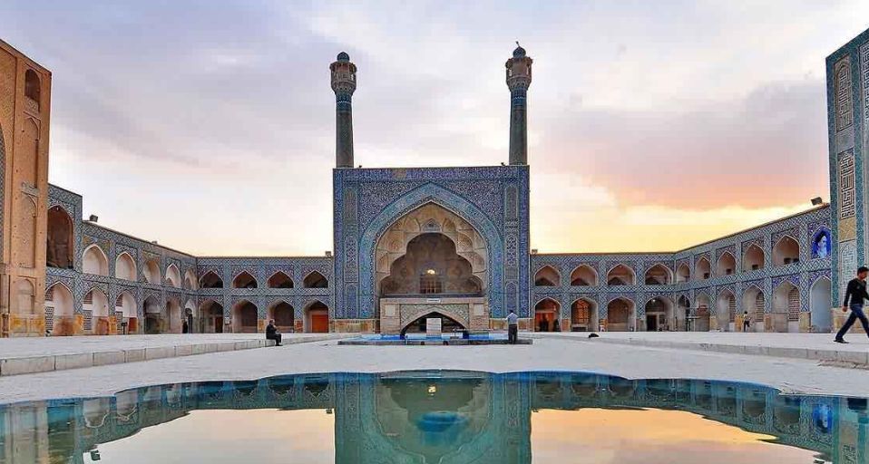 Ornate mosque courtyard with tiled arches and reflecting pool UNESCO emphasizes that the Masjed-e Jame reflects 12 centuries of continuous building, beginning as early as 841, and calls it a prototype whose architectural forms influenced later Central Asian mosque design.