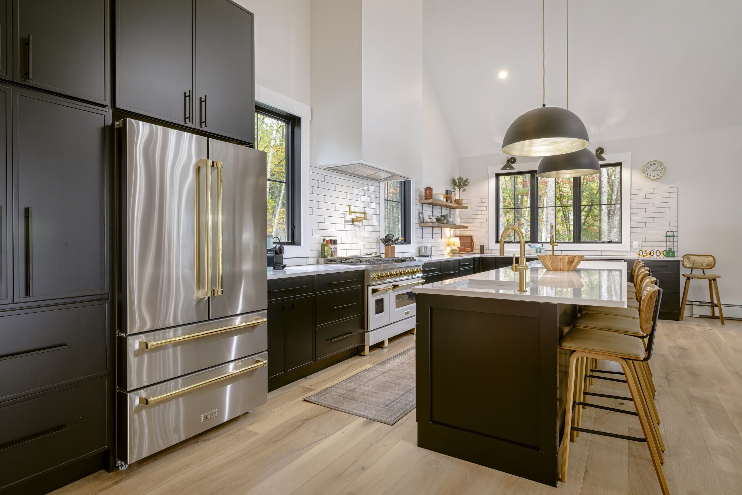 Modern black kitchen with island, stools, stainless fridge If you want a layout decision you can defend to a contractor, a designer, or your future self, use a quick workflow map and a measurement sanity check.