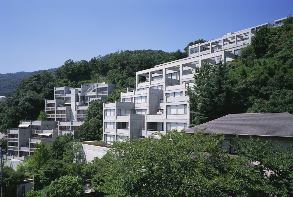 Stepped concrete apartment complex on wooded hillside On the steep hillside of Mount Rokko in Kobe, Rokko Housing I turns a brutal site constraint into a living laboratory: terraced concrete units step down the slope, creating shared views, balconies, and a dense community texture. Instead of hiding the difficulty of the terrain, the architecture uses it-stairs, landings, and retaining walls as the project’s social “streets,” and the mountain becomes part of the plan.