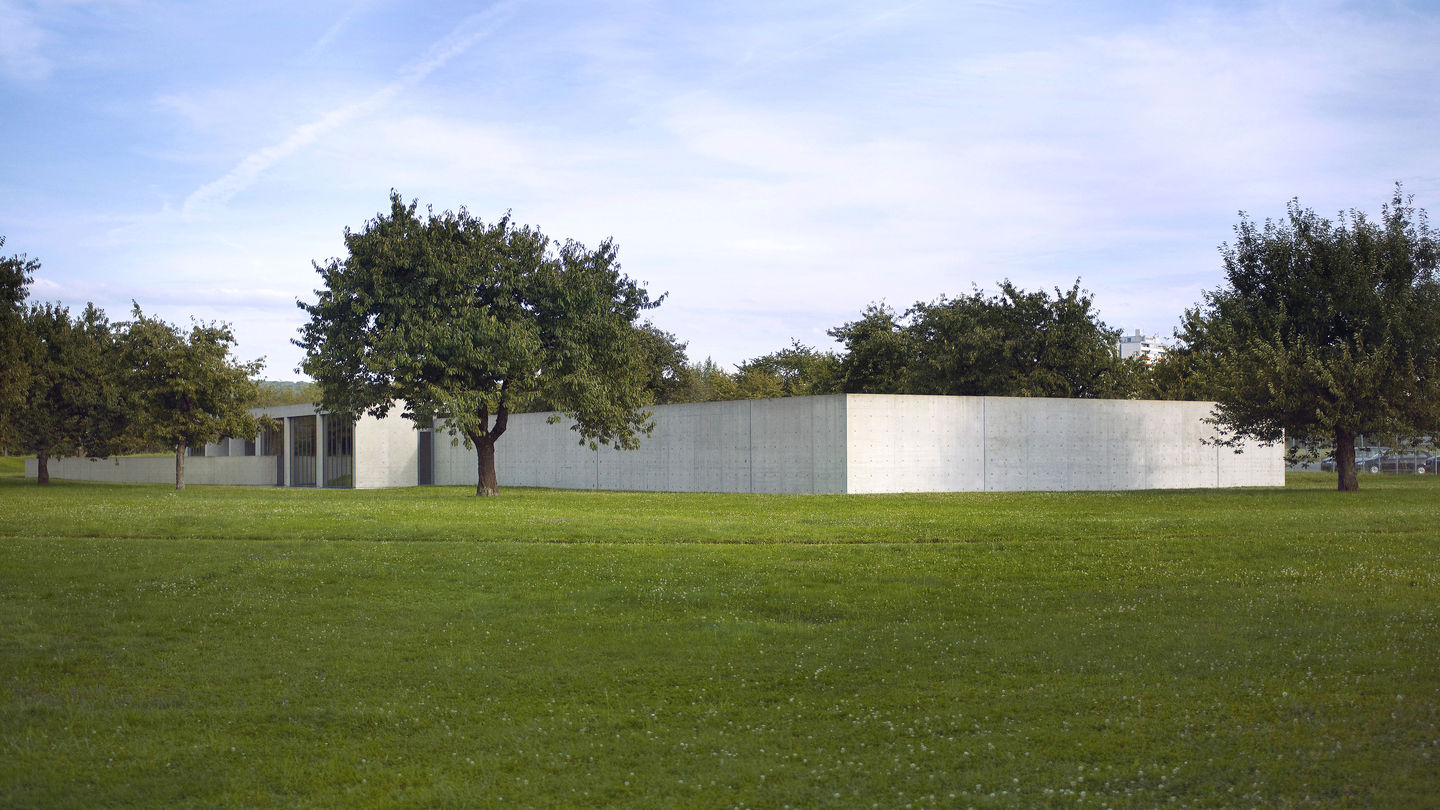Low concrete pavilion set within grassy park landscape Completed in 1993, the Vitra Conference Pavilion is widely cited as Ando’s first building outside Japan. Much of its volume is held low and partially below grade, and the approach path becomes part of the architectural “calm” before you arrive.