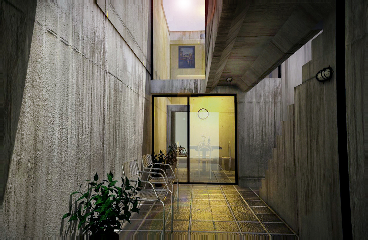 Narrow concrete corridor with chairs and glass doors Completed in 1976 in Sumiyoshi, Osaka, the Azuma House is a radical urban row house that turns inward: a simple concrete box split by an open-air courtyard that forces daily life to cross weather and sky.