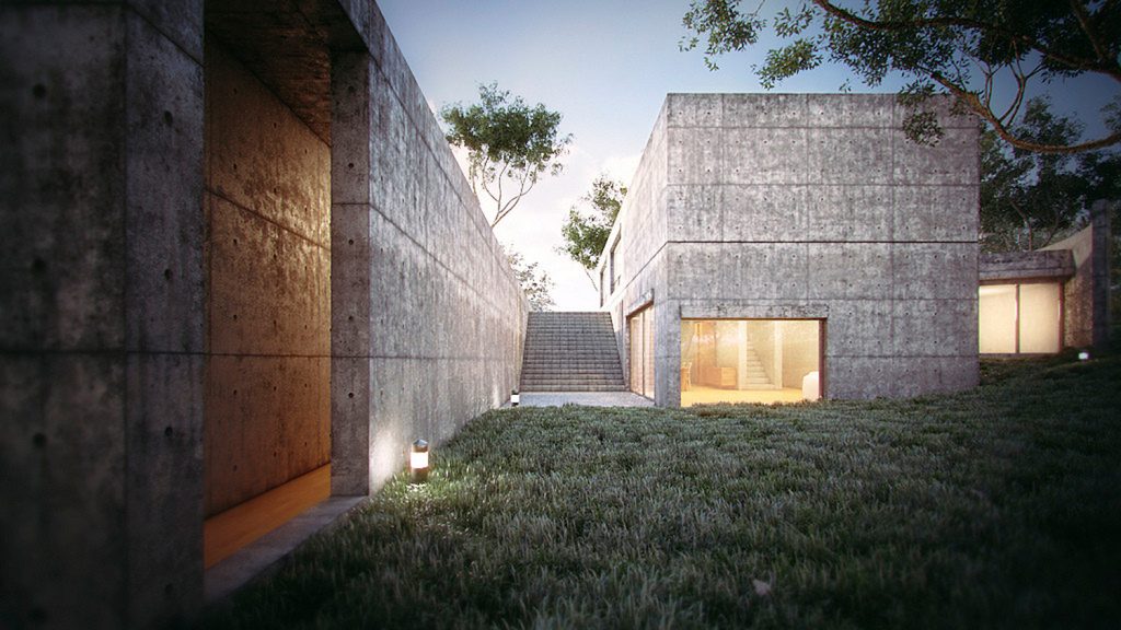 The concrete isn’t there to shout. It’s there to remove visual noise so light, water, shadow, and proportion can do the talking.