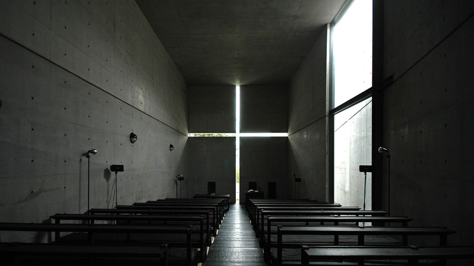 Minimalist concrete chapel with glowing cross-shaped window Built in Ibaraki, Osaka (1989), the Church of the Light is famous for one move: a cross-shaped cut that turns daylight into a glowing figure.